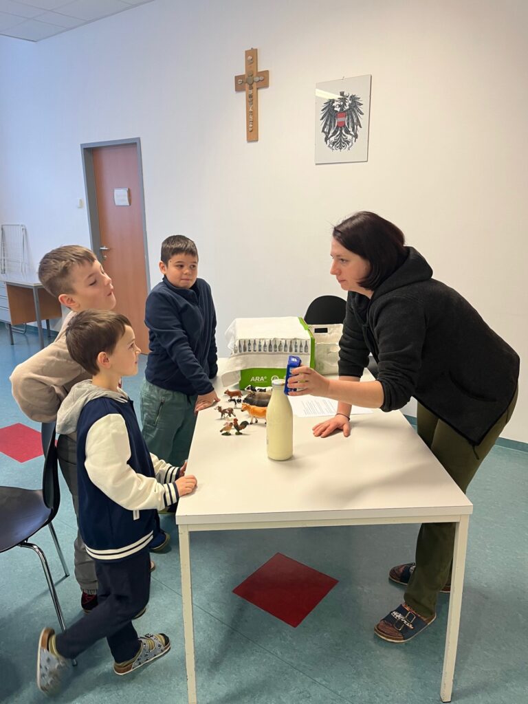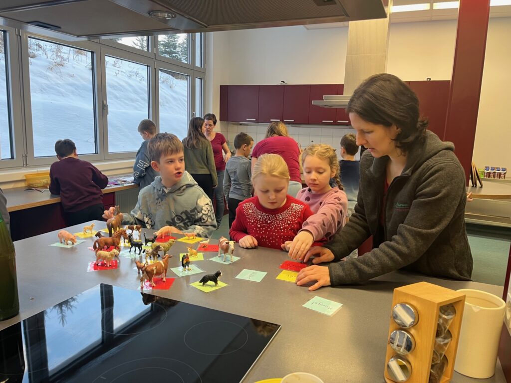 Gleich im neuen Jahr besuchten die Bäuerinnen von Hofstetten-Grünau unsere 2. Klassen. Im Stationenbetrieb lernten die Kinder die Tierfamilien kennen, durften Stoff- und Papiersackerl mit Bauernhoftiermotiven stempeln, Milchprodukte verkosten und gepressten Karottensaft verkosten. Zum Abschluss gab es für alle hungrigen Kinder noch eine gesunde Jause. Vielen Dank für den Besuch und eure Zeit an Frau Dirnberger und ihr Bäuerinnenteam!