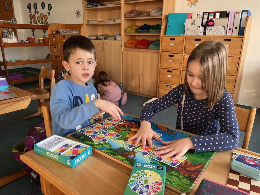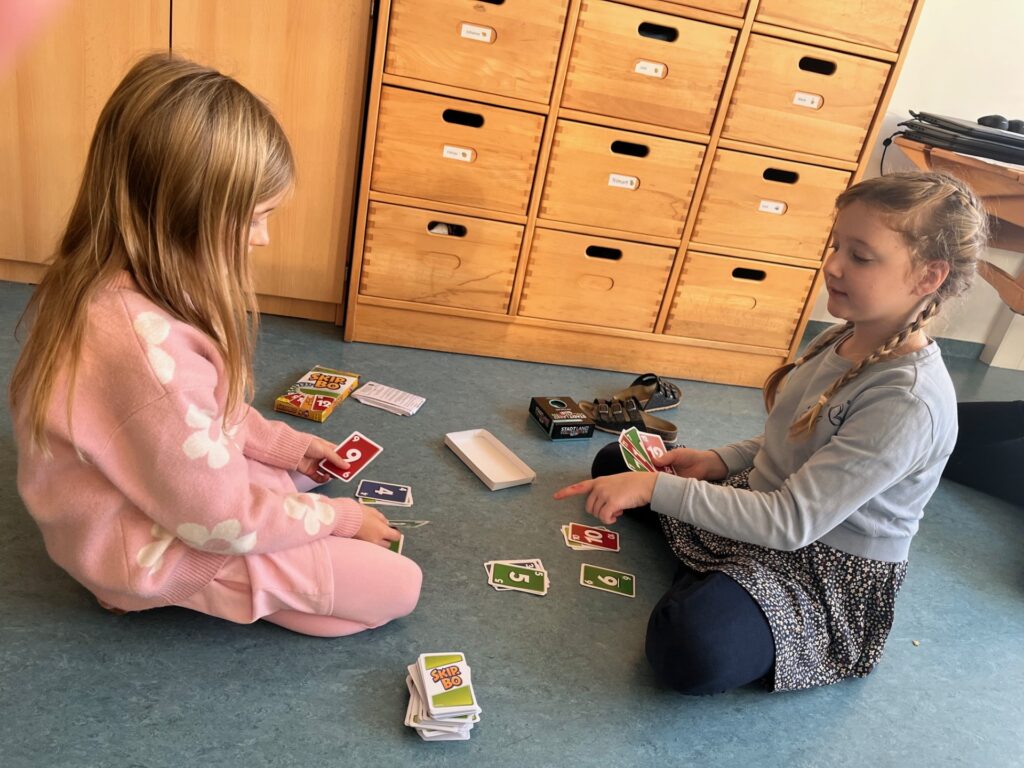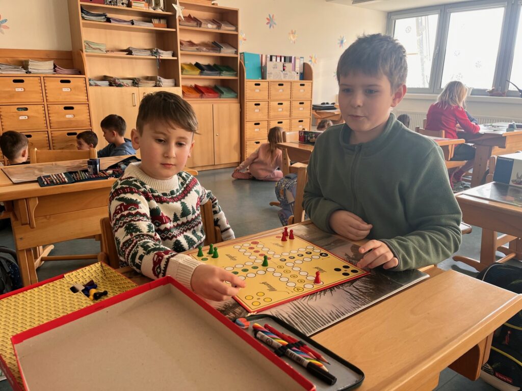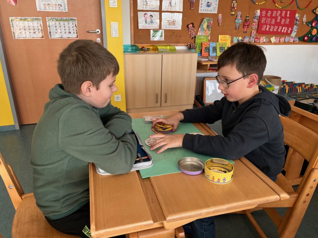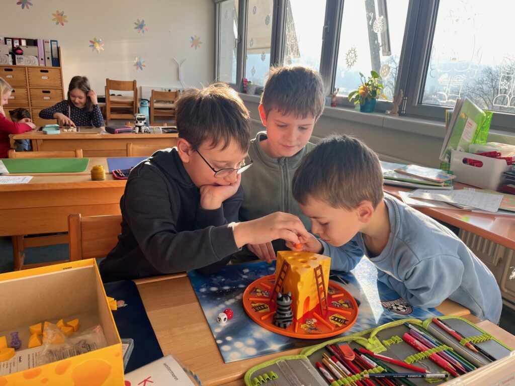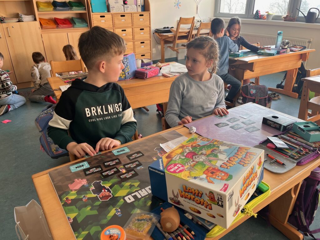Die Kinder der 2b Klasse nahmen ihre neuen Spiele in die Klasse mit und durften nach Herzenslust würfeln, knobeln, denken und Spielergemeinschaft erfahren.